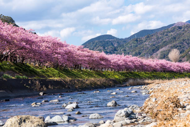 沖縄や台湾をルーツに持つ、非常にエキゾチックな桜です。花が開ききらず、釣鐘のような形で下向きに咲くのが最大の特徴で、色は非常に濃い紅色。遠くからでもすぐにそれと分かります。この桜は「早咲き桜の親」とも呼ばれ、河津桜などの多くの早咲き種のルーツとなっています。